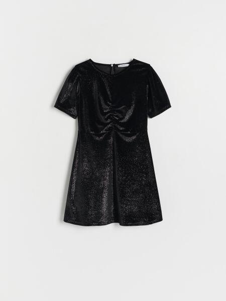 Reserved LC21201 Velúr Csillámos MIDI Ruha Rövid Ujjú Fodros 128